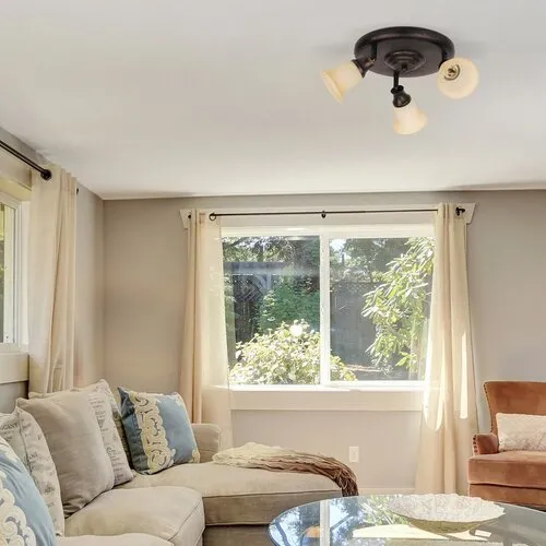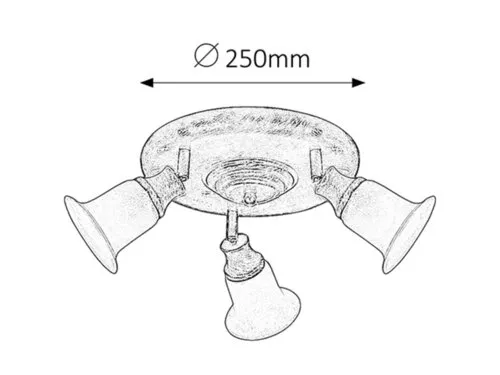 Klasszikus megjelenésű spotlámpa 3 darab E14-es foglalattal. 25 cm átmérőjű, barna színű, fém lámpatest, krém színű, pozícionálható opálüvegbúrákkal. A lámpatest E14-es foglalatú, max. 3x 40W teljesítményű LED-es fényforrásokkal is használható.
