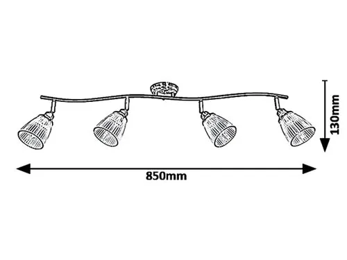 A Martha négyes spotlámpát a klasszikus stílus rajongóinak ajánljuk. Az antik bronz színben készült mennyezeti lámpa ívelt, fém testét négy enyhén szélesedő, henger alakú üveg búra, valamint kerek dísztalp egészíti ki. Az állítható lámpafejeknek köszönhetően tetszésünk szerint irányíthatjuk a lámpa fényét, egy irányba koncentrálva azt vagy szétszórva a helyiségben. Ez a modell nappalink berendezésének ízléses és elegáns darabja lehet. Választhatunk hozzá meleg vagy természetes fehér színű fényforrásokat, attól függően, hogy milyen hatást kívánunk elérni. A spot lámpa négy darab, egyenként legfeljebb 40 W teljesítményű fényforrással használható, a foglalatok típusa E14. A Martha lámpa méretei a következők: szélessége 850 mm, mennyezettől való távolsága 130 mm. Ezt a modellt fényforrások nélkül szállítjuk.