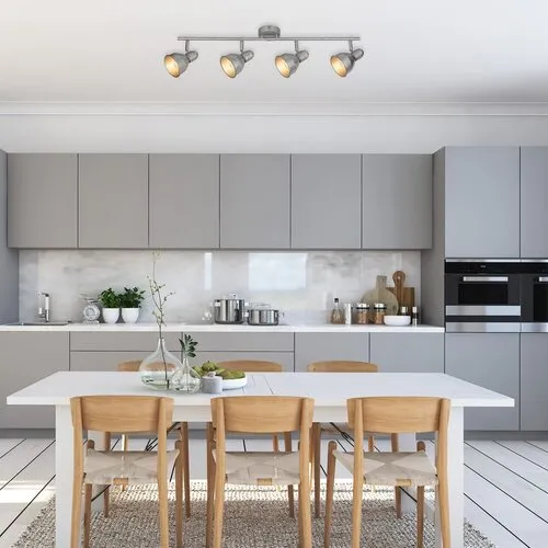 Az indusztriális stílusban készült Thelma négyes spotlámpa antik ezüst színével igazán jellegzetes kiegészítője lehet modern otthonunk berendezésének. A fémből készült, nagyméretű fali lámpa formavilágát tekintve hagyományosnak mondható, ám antik hatású felülete és szolid díszítése megkülönbözteti a szokványos modellektől. A kerek dísztalppal szerelt Thelma négy darab, egyenként legfeljebb 40 W teljesítményű fényforrással használható, a foglalatok típusa E14. Ezt a modellt elsősorban a nappaliba, esetleg egy tágasabb előszobába ajánljuk, ahol meleg fehér színű fényforrásokkal felszerelve otthonos, meghitt hangulatot teremthetünk vele, vagy természetes fehér színű fényforrásokkal használva modern, tiszta hatást érhetünk el vele. A Thelma négyes spot lámpa szélessége 740 mm, faltól való távolsága 170 mm. A fali lámpát fényforrások nélkül szállítjuk.