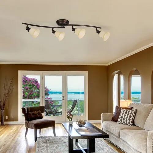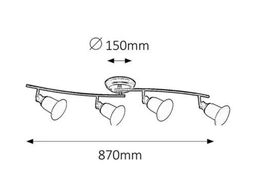 Klasszikus megjelenésű spotlámpa 4 darab E14-es foglalattal. 87 cm széles, barna színű, fém lámpatest, krém színű, pozícionálható opálüvegbúrákkal. A lámpatest E14-es foglalatú, max. 4x 40W teljesítményű LED-es fényforrásokkal is használható.