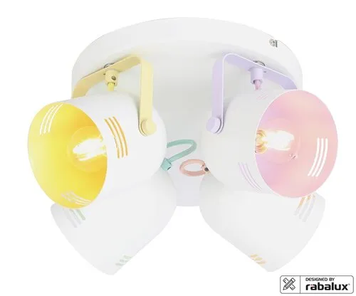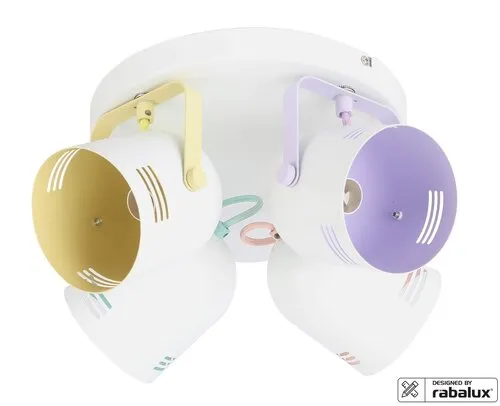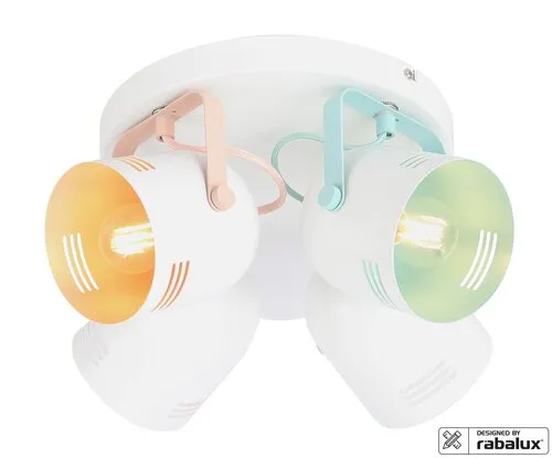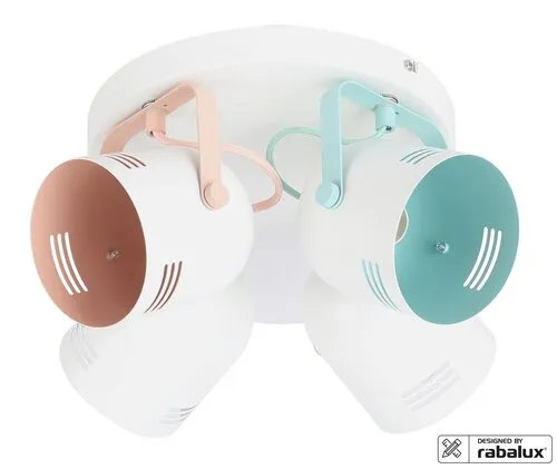 A fémből készült Minuet négyes spotlámpa vidám színeivel modern lakásunk üde színfoltja lehet. A Minuet a Rábalux saját tervezésű modellje, amelyet elsősorban a gyerekszobába ajánlunk. A harang alakú lámpafejek fehér alapszínét többféle szín egészíti ki, a nagy, kerek dísztalp fehér. Az állítható lámpafejeknek köszönhetően ezzel a mennyezeti lámpával hatékonyan világíthatjuk be az adott helyiséget. A spot lámpa négy darab, egyenként legfeljebb 40 W teljesítményű fényforrással használható, a foglalatok típusa E14. Választhatunk hozzá meleg vagy természetes fehér fényű fényforrásokat, attól függően, hogy milyen hatást szeretnénk elérni az adott helyiségben. A Minuet négyes spotlámpa átmérője 300 mm, mennyezettől való távolsága 160 mm. Ezt a modellt fényforrások nélkül szállítjuk.