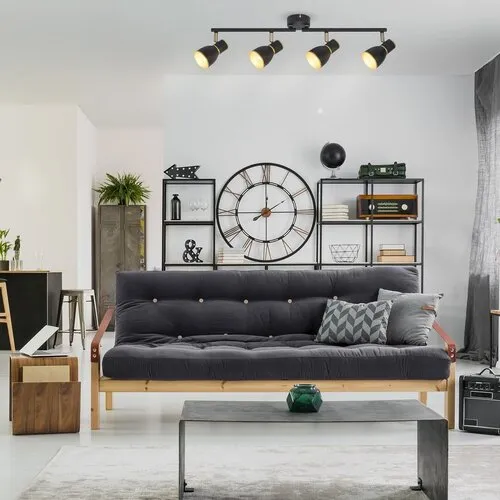 A Mackenzie négyes spot lámpa az indusztriális stílus képviselői közé tartozik. A fémből készült, fekete és arany színű modellt felszerelhetjük a nappaliban, hálószobában vagy egy tágas előszobában, stílusos kiegészítője lehet egy modern szobabelsőnek. A négy lámpafej igény szerint állítható, attól függően, hogy a szoba mely részébe szeretnénk koncentrálni a lámpa fényét. A spotlámpa négy darab, egyenként legfeljebb 40 W teljesítményű fényforrással használható, a foglalatok típusa E14. Ha az otthonos, meghitt hangulatot szeretnénk vele erősíteni, válasszunk hozzá meleg fehér színű fényforrásokat. A mennyezeti lámpa teljes szélessége 600 mm. A Mackenzie négyes spotlámpát fényforrás nélkül szállítjuk.