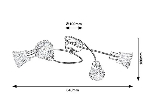 A klasszikus stílusban készült Hestia négyes spotlámpa nappalink vagy hálószobánk berendezésének elegáns darabja lehet. A krómszínű, indaszerűen kanyargó, fém lámpatestet átlátszó üvegbúrák egészítik ki, a lámpa kerek dísztalp segítségével rögzíthető a mennyezetre. A harang alakú búrák érdekességét hullámzó felületük csavart hatása adja. A négy különböző irányba tekintő lámpafej gondoskodik a helyiség hatékony bevilágításáról. A mennyezeti lámpa négy darab, egyenként legfeljebb 40 W teljesítményű fényforrással használható, a foglalatok típusa E14. Ha a meghitt, otthonos hangulatot szeretnénk erősíteni, válasszunk hozzá meleg fehér fényű fényforrásokat. A Hestia négyes spot lámpa méretei a következők: szélessége 640 mm, mennyezettől mért távolsága 180 mm, beépítési átmérője 100 mm. Ezt a modellt fényforrások nélkül szállítjuk.