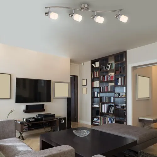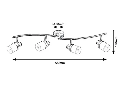 A hagyományos stílusban készült Finian négyes spotlámpa szinte bármely nappali vagy hálószoba ízléses kiegészítője lehet. A fémből készült, szatin króm lámpatestet henger alakú, opál üveg búrák egészítik ki. A lámpa különlegességét a kecses, légies vonalvezetés adja. Az állítható lámpafejeknek köszönhetően igényeinknek megfelelően oszthatjuk el a fényt az adott helyiségben. A mennyezeti lámpa négy darab, egyenként legfeljebb 40 W teljesítményű fényforrással használható, a foglalatok típusa E14. Ha a meghitt, otthonos hangulatot szeretnénk erősíteni, válasszunk a lámpához meleg fehér fényű fényforrásokat. A Finian négyes spot lámpa teljes hossza 720 mm, mennyezettől mért távolsága 180mm. A lámpát fényforrás nélkül szállítjuk.