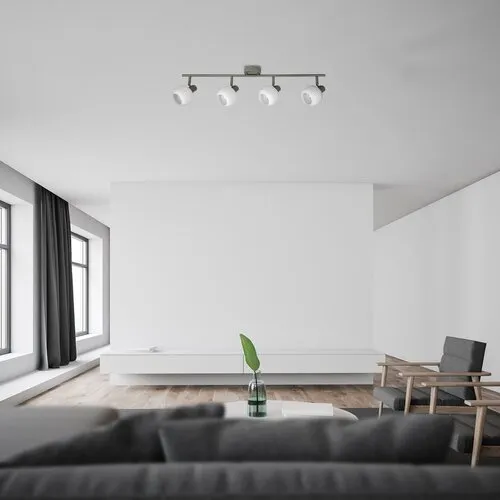A skandináv stílusú Soraya négyes spotlámpa a nappali, a hálószoba, az étkező vagy a konyha berendezésének kedvelt darabja lehet. A szürke színű, fém lámpatestet fehér üvegbúrák egészítik ki, a lámpa kisméretű, kerek dísztalp segítségével rögzíthető a mennyezetre. A négy lámpafej a dísztalphoz rögzített, hosszú tartórúdon helyezkedik el, a bordázott felületű búrák gömbölydedek, alul nyitottak. Ezzel a négyes spotlámpával egy tágasabb helyiséget is kényelmesen bevilágíthatunk. A Soraya négy darab, egyenként legfeljebb 40 W teljesítményű fényforrással használható, a foglalatok típusa E14. Ha meghitt, otthonos hangulatot szeretnénk varázsolni a szobába, válasszunk hozzá meleg fehér fényű fényforrásokat. Ha viszont inkább tiszta, modern hatást szeretnénk elérni, természetes fehér fényű fényforrásokkal használjuk. A Soraya négyes spot lámpa méretei a következők: szélessége 760 mm, mennyezettől mért távolsága 180 mm, beépítési átmérője 90 mm. Ezt a modellt fényforrások nélkül szállítjuk.