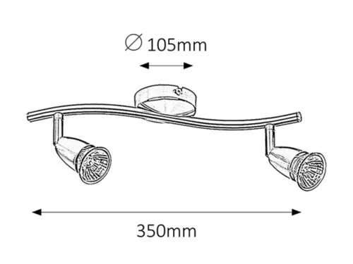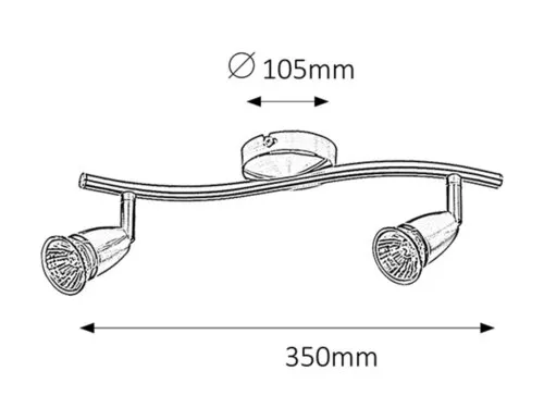 Időtlen megjelenésű mennyezeti spotlámpa 2 db foglalattal. 35 cm széles, szatin króm színű, fémből készített lámpatest és pozícionálható lámpabúrák. A lámpatest GU10-es foglalatkialakítású, max. 2x 50W teljesítményű energiatakarékos fényforrásokkal is használható.