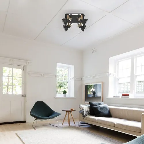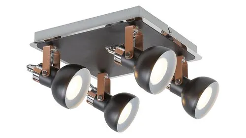 A Balzac négyes spot lámpa a minimál stílus képviselői közé tartozik. A fémből készült, matt fekete, barna és króm modellt felszerelhetjük a nappaliban vagy a hálószobában, stílusos kiegészítője lehet egy modern szobabelsőnek. A négy lámpafej igény szerint állítható, attól függően, hogy a szoba mely részében szeretnénk intenzívebb megvilágítást. A spotlámpa négy darab, egyenként legfeljebb 35 W teljesítményű fényforrással használható, a foglalatok típusa GU10. Ha az otthonos, meghitt hangulatot szeretnénk vele erősíteni, válasszunk hozzá meleg fehér fényű fényforrásokat. A lámpa szögletes dísztalpának mérete 250x250 mm. A Balzac vezetékes négyes spotlámpát fényforrás nélkül szállítjuk.