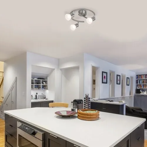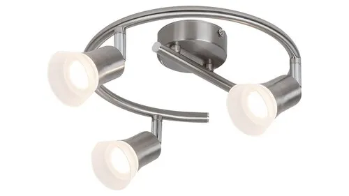 A hagyományos stílusban készült Riley hármas spotlámpa szinte bármely előszoba, nappali vagy hálószoba remek kiegészítője lehet. A fémből készült, szatin króm lámpatestet opál műanyag búrák egészítik ki, a lámpa egyediségét pedig a csigavonalat mintázó kialakítás adja. Az állítható lámpafejeknek köszönhetően igényeinknek megfelelően oszthatjuk el a fényt az adott helyiségben. A Riley mennyezeti lámpa beépített, energiatakarékos LED fényforrásokkal rendelkezik. A fényforrások teljesítménye 12 W, fényerejük 1050 lumen, élettartamuk 20 000 óra. 3000 K-es színhőmérsékletüknek megfelelően meleg fehér fényt bocsátanak ki, így az otthonos, meghitt hangulatot erősítik. A lámpa átmérője 405 mm, mennyezettől mért távolsága 80mm, decoplate átmérője pedig 160mm. A Riley hármas spot lámpára 5 év garanciát vállalunk.