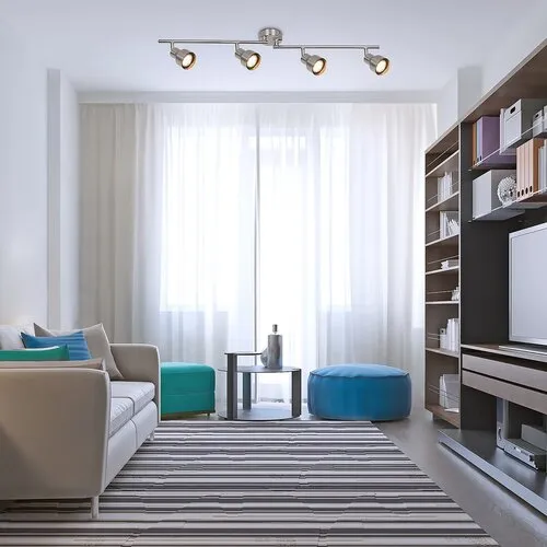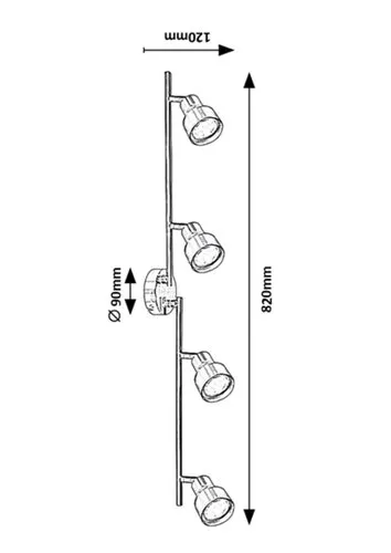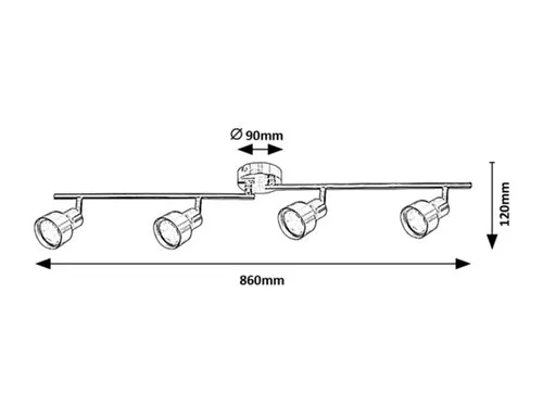 A modern stílusú Blake négyes spotlámpa a lakás számos helyiségébe jó választás lehet: felszerelhetjük a nappaliban, a hálószobában, de az étkezőben vagy akár a konyhában is. A teljes egészében fémből készült, szatinkróm színű lámpa kerek dísztalp segítségével rögzíthető a mennyezetre. Az állítható lámpafejek a dísztalphoz rögzített, két részből álló vízszintes tartórúdon helyezkednek el, segítségükkel könnyen bevilágíthatunk egy tágasabb helyiséget is. A Blake négy darab, egyenként legfeljebb 50 W teljesítményű fényforrással használható, a foglalatok típusa GU10. Ízlésünktől és a felszerelés helyétől függően választhatunk hozzá meleg vagy természetes fehér fényű fényforrásokat. A négyes spot lámpa méretei a következők: szélessége 860 mm, magassága 145 mm, mennyezettől mért távolsága 120 mm. Ezt a modellt fényforrások nélkül szállítjuk.