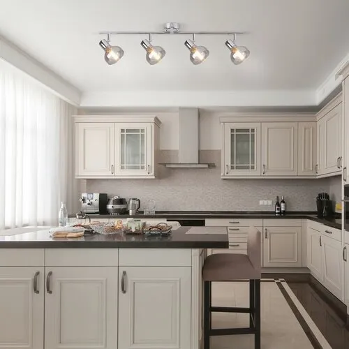 Modern és elegáns: a Holly négyes spotlámpa nem hagy megvilágítatlan sarkot egy tágasabb nappaliban vagy előszobában sem. A beltéri lámpa négy lámpafeje tökéletes megvilágítást biztosít a helyiségben, így nem lesz szükség kiegészítő fényforrásokra. Ezt a design lámpát füstszínű lámpabúra és krómozott fém dísztalp teszi egyedivé. A négyes spotlámpa teljes szélessége 700 mm, a dísztalp átmérője 80 mm. A lámpa E14 típusú foglalataiba 4 db, egyenként legfeljebb 40 W teljesítményű, energiatakarékos izzót tehetünk. Választhatunk hozzá melegfehér vagy természetes fehér színű izzókat, attól függően, hogy kellemes, meghitt hangulatot szeretnénk varázsolni, vagy a világosabb, tisztább fényt részesítjük előnyben. A lámpát fényforrás nélkül szállítjuk.