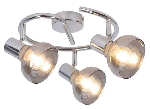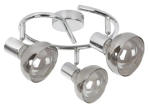 A letisztult formavilágot képviselő Holly hármas spotlámpa remek választás lehet a nappaliba, az étkezőbe vagy egy tágas előszobába. A design lámpa három állítható feje 360 fokos, tökéletes megvilágítást biztosít a helyiségben, így nem lesz szükség kiegészítő fényforrásokra. Ezt a modellt füstszínű lámpabúra és krómozott fém dísztalp teszi különlegessé. A lámpa méretei a következők: teljes átmérője 440 mm, a dísztalp átmérője 80 mm. A Holly hármas spotlámpa E14 típusú foglalataiba 3 db, egyenként legfeljebb 40 W teljesítményű, energiatakarékos izzót tehetünk. A kívánt hatástól függően választhatunk hozzá melegfehér vagy természetes fehér fényű izzókat. A lámpát fényforrás nélkül szállítjuk.