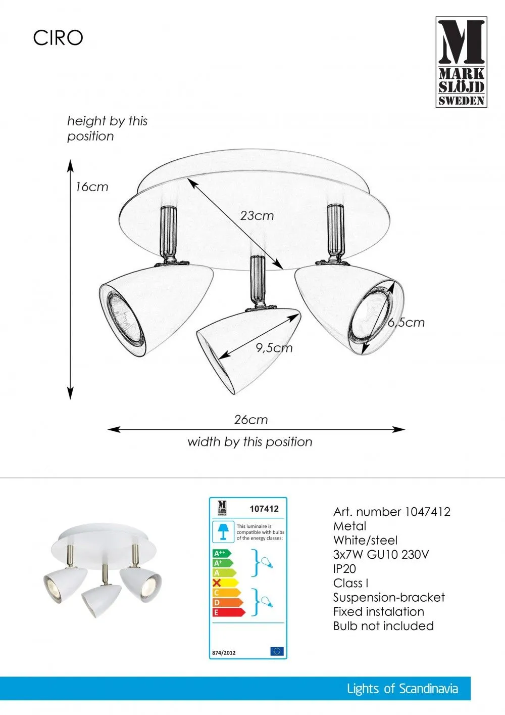 Markslöjd CIRO Plafon 3L Bialy/Stal