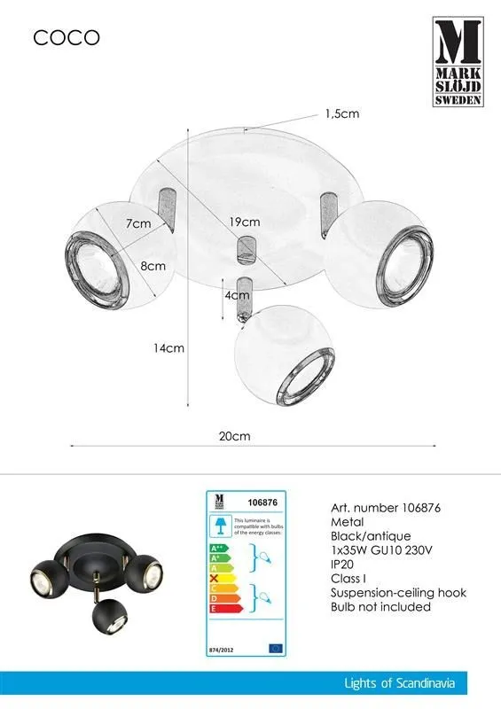 MARKSLÖJD COCO mennyezeti fekete/AB