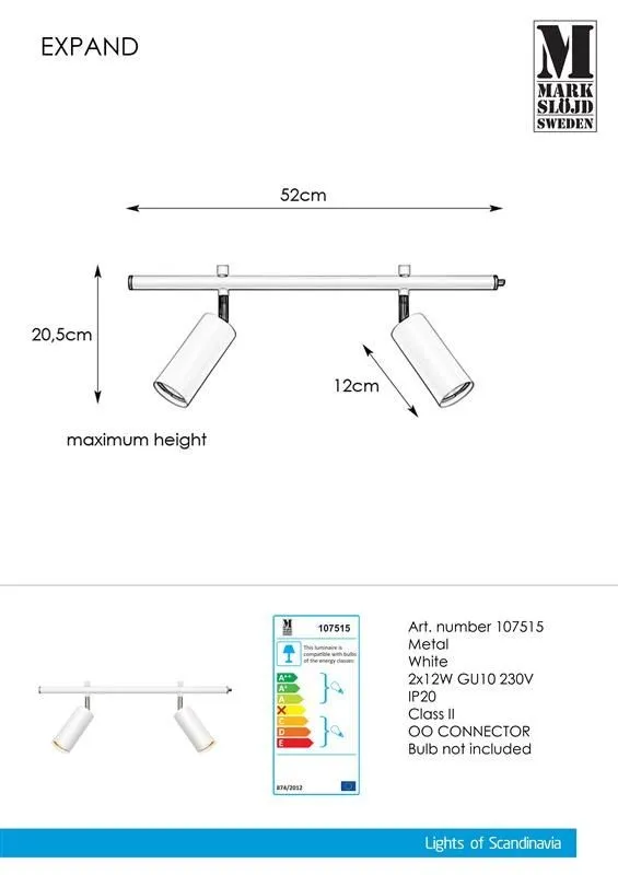 Markslöjd EXPAND Spot 2L 50cm Gu10 Cylinder fehér