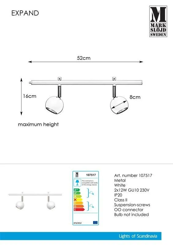 Markslöjd EXPAND Spot 2L 50cm Gu10 Round fehér