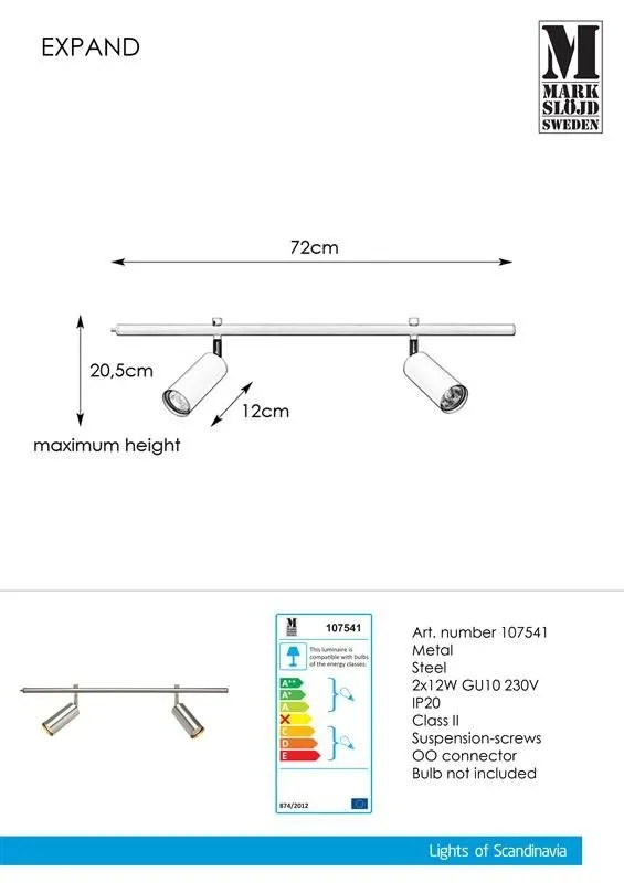 Markslöjd EXPAND Spot 2L 70cm Gu10 Cylinder acél
