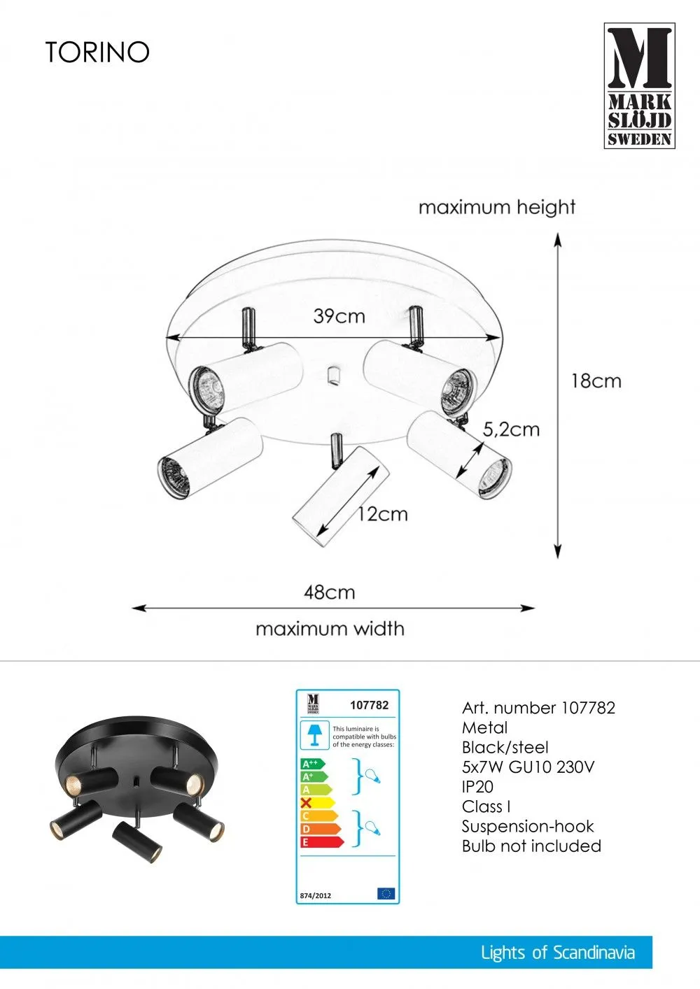 Markslöjd TORINO Mennyezeti 5L Fekete/Acél