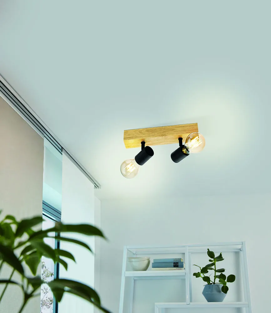 Mennyezeti lámpa E27 2x60W tölgy/fekete Townshend