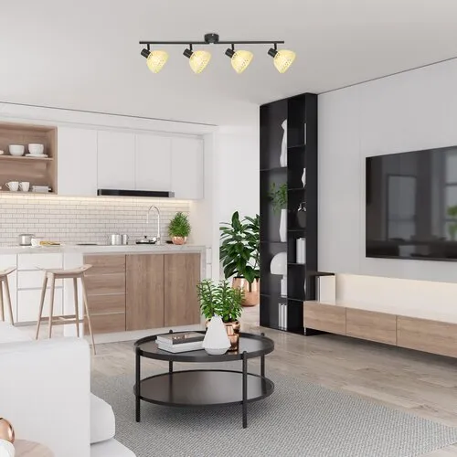 Az indusztriális stílusban készült Rattan négyes spotlámpát a lakás számos helyiségébe ajánljuk: felszerelhetjük a nappaliban, az étkezőben, a konyhában vagy éppen a hálószobában. A matt fekete lámpatestet ernyő formájú, természetes rattanból készült búrák egészítik ki, a lámpa kerek dísztalp segítségével rögzíthető a mennyezetre. A lámpafejek a dísztalphoz kapcsolódó, két darabból álló tartórúdon kaptak helyet. A Rattan négy darab, egyenként legfeljebb 15 W teljesítményű fényforrással használható, a foglalatok típusa E14. A mozgatható lámpafejeknek köszönhetően ezzel a modellel hatékonyan bevilágíthatjuk az egész helyiséget. A négyes spot lámpa méretei a következők: szélessége 825 mm, magassága 160 mm, egy-egy búra átmérője 135 mm, a lámpa mennyezettől mért távolsága 190 mm, beépítési átmérője 80 mm. Ezt a modellt fényforrások nélkül szállítjuk.