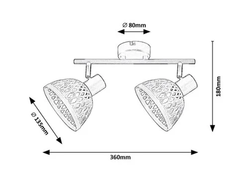 Az indusztriális stílusban készült Rattan kettes spotlámpát a lakás számos helyiségébe ajánljuk: felszerelhetjük a nappaliban, az étkezőben, a konyhában vagy éppen a hálószobában. A matt fekete lámpatestet ernyő formájú, természetes rattanból készült búrák egészítik ki, a lámpa kerek dísztalp segítségével rögzíthető a falra. A Rattan két darab, egyenként legfeljebb 15 W teljesítményű fényforrással használható, a foglalatok típusa E14. Ízlésünktől és attól függően, hogy a lakás melyik helyiségében szereljük fel a lámpát, választhatunk hozzá meleg vagy természetes fehér fényű fényforrásokat. Ha például a hálószobában kap helyet, meleg fehér fényű fényforrásokkal használva segít meghitt, otthonos hangulatot teremteni. A Rattan kettes spot lámpa méretei a következők: szélessége 360 mm, magassága 160 mm, egy-egy búra átmérője 135 mm, a lámpa faltól mért távolsága 180 mm, beépítési átmérője 80 mm. Ezt a modellt fényforrások nélkül szállítjuk.