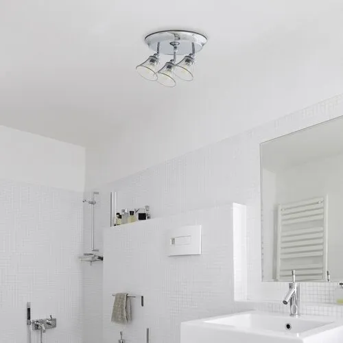 A klasszikus stílus képviselői közé tartozó Antoine hármas mennyezeti fürdőszobai lámpát azoknak ajánljuk, akik elegáns megoldást keresnek fürdőjükbe. A krómszínű, fémből készült lámpatestet harang alakú, átlátszó üvegbúrák egészítik ki. Az Antoine nagyméretű, kerek dísztalp segítségével rögzíthető a mennyezetre és három darab, egyenként legfeljebb 40 W teljesítményű fényforrással használható. A foglalatok típusa E14. A különböző irányba tekintő lámpafejek segítségével hatékonyan bevilágíthatjuk a fürdőszobát. Az Antoine-hoz választhatunk természetes vagy meleg fehér fényű fényforrásokat. A lámpa IP44-es védettsége garantálja, hogy legfeljebb 1 mm átmérőjű tárgyak behatolása ellen, valamint bármilyen irányból fröccsenő víz ellen védett. A hármas mennyezeti lámpa méretei a következők: szélessége 400 mm, faltól mért távolsága 180 mm. Ezt a modellt fényforrások nélkül szállítjuk.