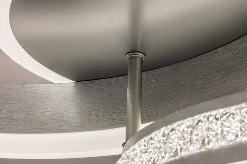 A minimál stílusban készült Avalon mennyezeti lámpa nem mindennapi kiegészítője lehet nappalink, étkezőnk vagy hálószobánk berendezésének. A szálcsiszolt alumínium színű, fém lámpatestet fehér akrilbúrák teszik teljessé, a lámpa kerek dísztalp segítségével rögzíthető a mennyezetre. Az Avalon különlegességét a lámpát alkotó két gyűrű formájú elem adja, amelyet körben kristálydekor díszít. A mennyezeti lámpa beépített LED fényforrással rendelkezik, amelynek teljesítménye 50 W, fényereje 3150 lumen, élettartama pedig 20 000 óra. A 4000 K színhőmérsékletű fényforrás természetes fehér fényt sugároz. Az Avalon méretei a következők: szélessége 650 mm, mennyezettől mért távolsága 150 mm, beépítési átmérője 190 mm. Erre a nagyszerű modellre 5 év garanciát biztosítunk.