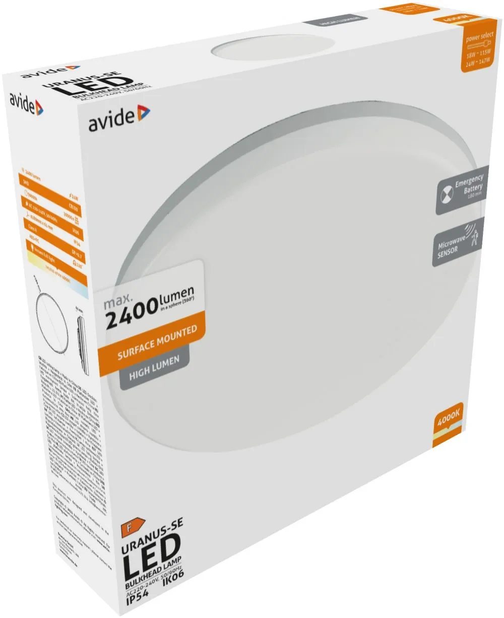 Avide (Uranus) Cseppálló Mennyezeti Lámpa Kerek IP54 18/24W NW 4000K Szenzoros és Inverteres