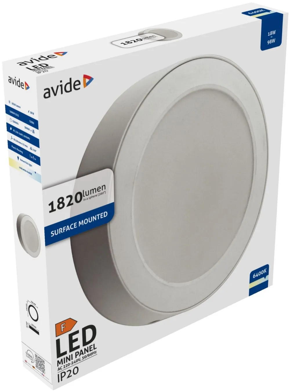 Avide LED Falra Szerelhető Kerek Mennyezeti Lámpa Műanyag 18W CW 6400K
