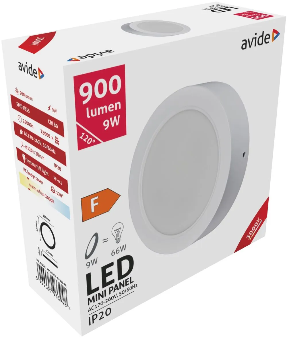 Avide LED Falra Szerelhető Kerek Mennyezeti Lámpa Műanyag 9W WW 3000K