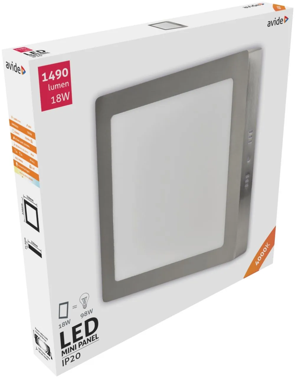 Avide LED Falra Szerelhető Négyzetes Mennyezeti Lámpa ALU Szatén Nikkel 18W NW 4000K