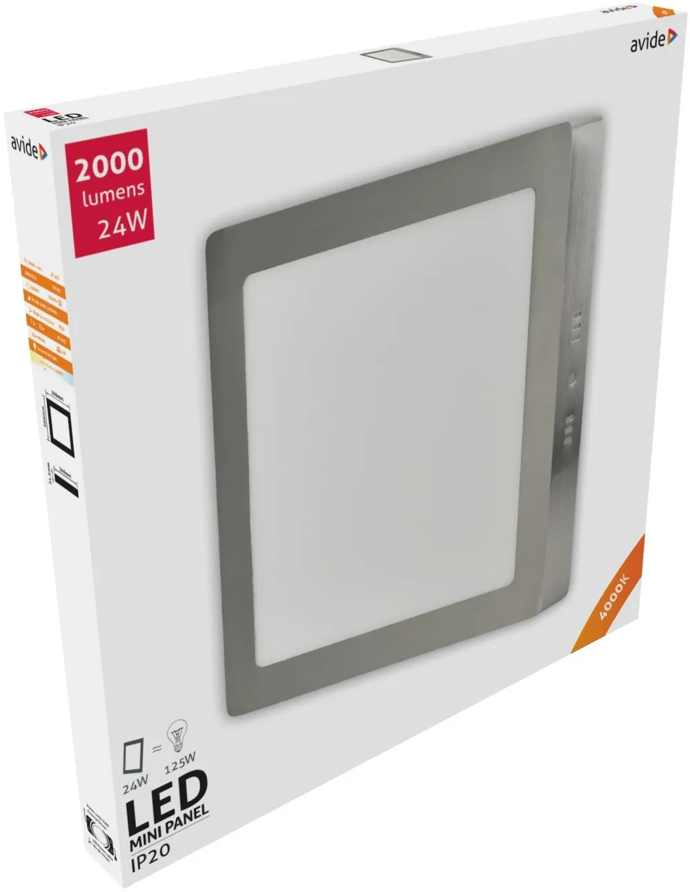 Avide LED Falra Szerelhető Négyzetes Mennyezeti Lámpa ALU Szatén Nikkel 24W NW 4000K