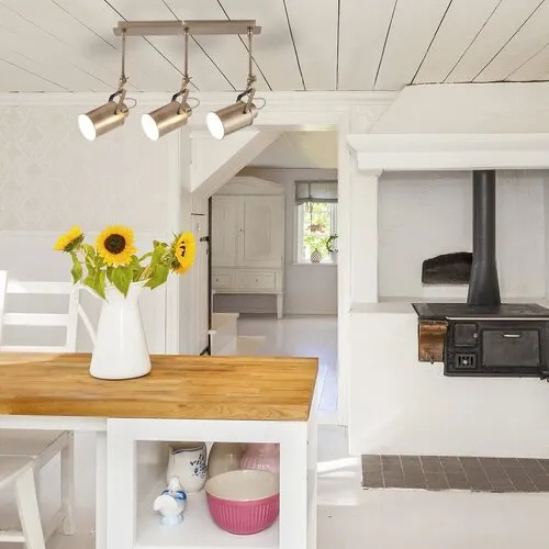 Indusztriális stílusú mennyezeti spotlámpa 3 db foglalattal. 47 cm széles, antik bronz színű fémből készített lámpatest és pozícionálható lámpabúrák. A mennyezeti lámpa E-27-es foglalatú, max. 3x 60W teljesítményű energiatakarékos fényforrásokkal is használható.