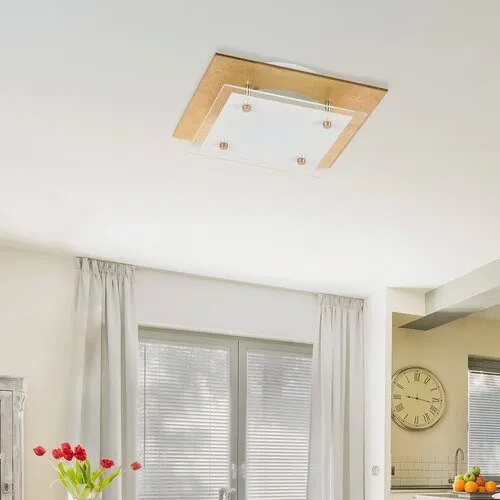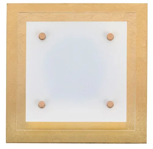 Minimalista stílusú, modern megjelenésű mennyezeti lámpa beépített energiatakarékos LED fényforrással. 23,5 x 23,5 cm széles, arany fólia és fehér színkombinációjú fém és üveg szerkezet. A beépített LED fényforrás A+ energiaosztály besorolású és 12W teljesítmény mellett 960 lumenes fényerőt, valamint 3000 Kelvines, természetes fehér színű fényt biztosít. 5 év garanciával. A lámpatestben a fényforrás nem cserélhető.