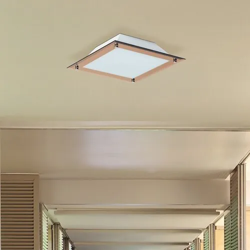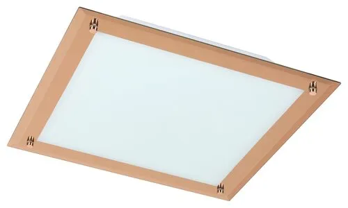 Minimalista stílusú, modern megjelenésű mennyezeti lámpa beépített energiatakarékos LED fényforrással. 30 x 30 cm széles, fém és üveg kombinációjú szerkezet rózsaarany színnel. A beépített LED fényforrás A+ energiaosztály besorolású és 12W teljesítmény mellett 960 lumenes fényerőt, valamint 3000 Kelvines, melegfehér színű fényt biztosít. 5 év garanciával. A lámpatestben a fényforrás nem cserélhető.