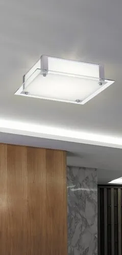 Modern, egyben minimalista megjelenésű mennyezeti lámpa beépített energiatakarékos LED fényforrással. Fehér és króm színkombinációjú, 30 cm széles, fémből készített test és üveg lámpabúra. A lámpatestbe beépített, A+ energiaosztályú fényforrás 12W teljesítmény mellett 960 lumenes fényerőt, valamint 4000 Kelvines, természetes fehér színű fényt és 25.000 órás tervezett élettartamot kínál. A lámpatestbe beépített fényforrás nem cserélhető. 5 év garanciával!