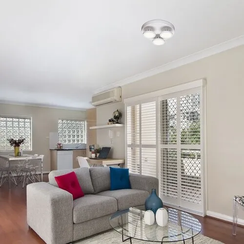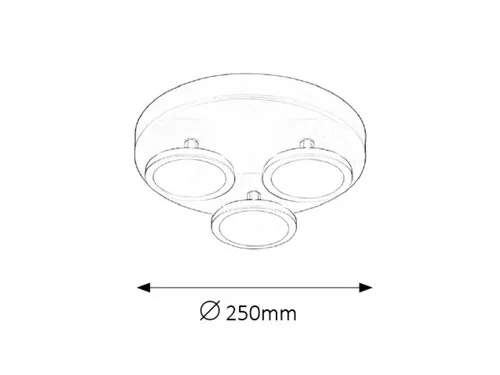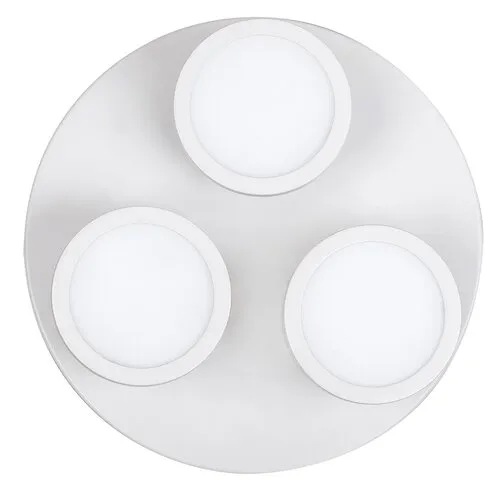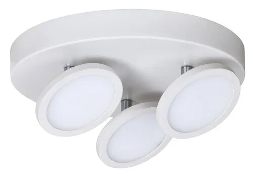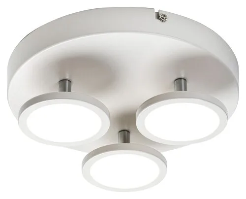 Minimalista stílusú mennyezeti lámpa beépített energiatakarékos LED fényforrásokkal. 25 cm átmérőjű, matt fehér és króm színű, fém és műanyag kombinációjú szerkezet IP20-as védettséggel. A lámpatestben elhelyezett LED fényforrások A+ energiaosztály besorolásúak. 3x 6W teljesítmény mellett 3x 420 lumenes fényerőt, továbbá 4000 Kelvines, természetes fehér színű fényt adnak. 5 év garanciával. A lámpatestben a fényforrások nem cserélhetők.