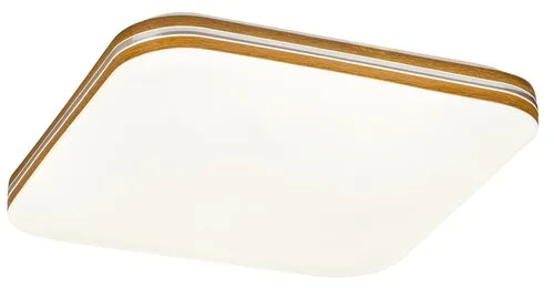 Modern megjelenésű mennyezeti lámpa beépített energiatakarékos LED izzóval. 35 x 35 cm széles, fém és műanyag kombinációjú lámpatest fehér és dió színben, IP20-as védettséggel. A lámpatestbe beépített LED izzó 18W teljesítmény mellett 1350 lumen fényerőt, valamint 4000 Kelvines, természetes fehér színű fényt kínál. A lámpatestben a izzó nem cserélhető. 5 év garanciával!