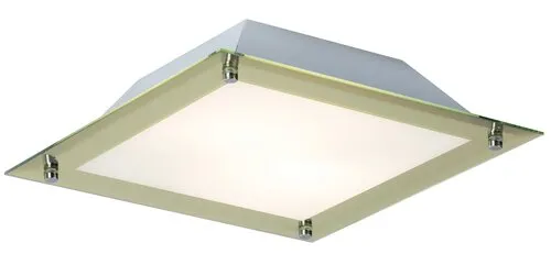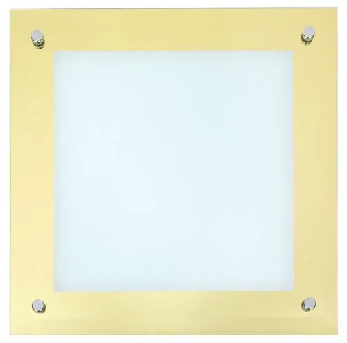 Minimalista stílusú, modern megjelenésű mennyezeti lámpa beépített energiatakarékos LED fényforrással. 40 x 40 cm széles, fém és üveg kombinációjú szerkezet arany színnel. A beépített LED fényforrás A+ energiaosztály besorolású és 18W teljesítmény mellett 1440 lumenes fényerőt, valamint 3000 Kelvines, melegfehér színű fényt biztosít. 5 év garanciával. A lámpatestben a fényforrás nem cserélhető.