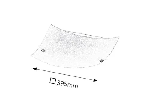 Modern megjelenésű mennyezeti lámpa beépített energiatakarékos LED fényforrással. Fém lámpatest és 39,5 x 39,5 cm széles, fehér alapon mintás üveg lámpabúra króm színű rögzítőcsavarokkal. A beépített LED fényforrás A+ energiaosztály besorolású és 18W teljesítmény mellett 1440 lumenes fényerőt, továbbá 4000 Kelvines, természetes fehér színű fényt ad. 5 év garanciával. A lámpatestben a fényforrás nem cserélhető.
