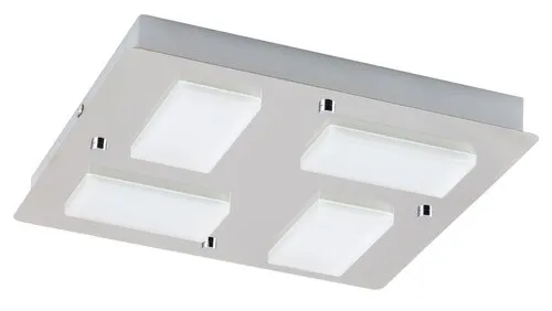 Modern megjelenésű fürdőszobai lámpa beépített energiatakarékos LED fényforrásokkal. 30 cm széles, króm színű fém lámpatest és fehér színű műanyag lámpabúrák, IP44-es, azaz por és fröccsenő víz elleni védelemmel. A beépített LED fényforrások A+ energiaosztályú besorolás és 4x 4,5W teljesítmény mellett 4x 387 lumenes fényerőt és 4000 Kelvines, természetes fehér színű fényt biztosítanak. 5 év garanciával. A lámpatestbe beépített fényforrások nem cserélhetők.