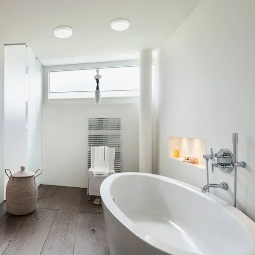 Az Oleg mennyezeti lámpát azoknak ajánljuk, akik a funkcionális stílust részesítik előnyben, ugyanakkor a kerekded formák hívei. A fémből és műanyagból készült, fehér színű modell beépített LED fényforrással rendelkezik. A beépített LED fényforrás energiafogyasztása 18 W, fényereje 1890 lumen. A lámpa színhőmérséklete 4000 K, azaz természetes fehér fénnyel világítja meg az adott helyiséget, tiszta, modern hatást keltve. Az Oleg beépíthető mennyezeti lámpa tökéletes választás a fürdőszobába, mivel IP65-es védettsége garantálja, hogy por behatolása ellen, és bármilyen irányból fröccsenő víz ellen védett. A kerek lámpa átmérője 175 mm, mennyezettől mért távolsága 25 mm, kivágási mérete 140 mm. Az Oleg beépíthető mennyezeti lámpára 5 év garanciát vállalunk.