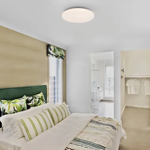 A beépített LED fényforrással rendelkező Rob mennyezeti lámpa modern és elegáns megoldást kínál a nappali, a hálószoba vagy éppen az étkező hangulatos megvilágítására. A 290 mm-es átmérő és az extra vékony kialakítás - a lámpa mennyezettől mért távolsága mindössze 63 mm - melegfehér fénnyel párosul. A fémből készült lámpát műanyag, fehér búra borítja, ennek köszönhetően diszkréten simul bele a mennyezet fehér vagy pasztell színébe. A LED lámpa energiatakarékos fényforrásának névleges élettartama 25 000 óra, fényereje 1400 lumen, színhőmérséklete 3000 K, teljesítménye 20 W. A mennyezeti lámpára 5 év garanciát vállalunk.