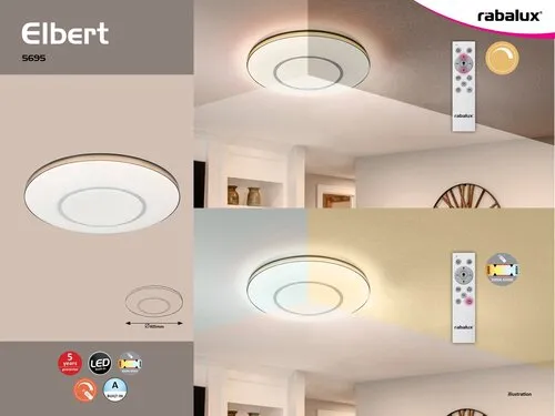 A számos extra funkcióval rendelkező Elbert mennyezeti lámpát elsősorban a nappaliba vagy a hálószobába ajánljuk, de egy tágas előszobában is felszerelhetjük. A modern stílusú, fémből és műanyagból készült, fehér színű lámpa energiatakarékos, beépített LED fényforrással rendelkezik. A fényforrás teljesítménye 24 W, fényereje 1680 lumen, élettartama 20 000 óra. A lámpa színhőmérséklete tetszés szerint változtatható 3000-6000 K között, ami annyit jelent, hogy képes meleg fehér, természetes fehér vagy éppen hideg fehér fénnyel megvilágítani az adott helyiséget. De itt még nincs vége az extráknak: az Elbert dimmelhető, azaz fényereje igény szerint változtatható. A kerek mennyezeti lámpa átmérője 405 mm, mennyezettől való távolsága 60 mm. A távirányítóval szabályozható Elbert lámpára 5 év garanciát vállalunk.