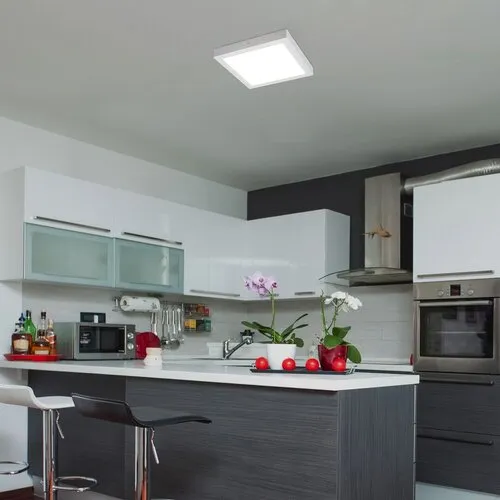 A Lois szögletes mennyezeti LED ráépíthető lámpa olyan hatást kelt, mint egy ablak, amely beengedi a nap természetes fényét a helyiségbe. Matt fehér színével és minimalista dizájnjával ez a 300x300 mm-es LED lámpa nagyszerűen illeszkedik bármely modern berendezésű konyhába, fürdőszobába vagy nappaliba. A fémből készült mennyezeti lámpát műanyag búra borítja. A beépített LED fényforrás 4000 K színhőmérsékletű, természetes fehér fényt bocsát ki, fényereje 1700 lumen, energiafogyasztása 24 W. Energiatakarékos, névleges élettartama 25 000 óra. A többi Lois LED mennyezeti lámpához hasonlóan erre a modellre is 5 év garanciát vállalunk.
