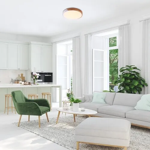 A skandináv stílusú Maple mennyezeti lámpát azoknak ajánljuk, akik szívesen ötvözik a modern stílust a természetességgel. Ez a matt fehér színben, fémből és fából készült modell egy kis melegséget varázsol a nappali vagy a hálószoba berendezésébe. A kerek lámpatestet fehér műanyag búra egészíti ki. A Maple beépített LED fényforrással rendelkezik, amelynek teljesítménye 24 W, fényereje 1760 lumen, színhőmérséklete pedig 3000 K. A meleg fehér fénnyel világító fényforrás élettartama 30 000 óra. A különösen vékony kialakítású mennyezeti lámpa átmérője 415 mm, mennyezettől mért távolsága pedig mindössze 50 mm. Erre a termékünkre 5 év garanciát biztosítunk.