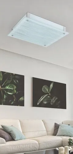 Minimalista stílusú, modern megjelenésű mennyezeti lámpa beépített energiatakarékos LED fényforrással. 38 x 38 cm széles, fehér és króm színű fém lámpatest és üveg lámpabúra. A beépített LED fényforrás A+ energiaosztály besorolású és 24W teljesítmény mellett 1920 lumenes fényerőt, valamint 4000 Kelvines, természetes fehér színű fényt biztosít. 5 év garanciával. A lámpatestben a fényforrás nem cserélhető.
