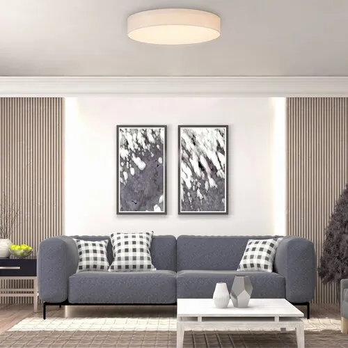Az Artemis mennyezeti lámpa egyszerűségében nagyszerű: ezt a nagyméretű modellt elsősorban az előszobába, a nappaliba vagy a hálószobába ajánljuk. A nagyméretű, kerek, fehér lámpát fehér színű szövet borítja, a lámpa anyaga fém. Az Artemis beépített, energiatakarékos LED fényforrással rendelkezik, melynek teljesítménye 24 W, fényereje 1950 lumen, élettartama pedig nem kevesebb, mint 30 000 óra. A fényforrás 3000 K-es színhőmérsékletének megfelelően meleg fehér fényt sugároz, ami az otthonos, meghitt hangulatot erősíti az adott helyiségben. A mennyezeti lámpa átmérője 400 mm, mennyezettől való távolsága 90 mm. Erre az Artemis modellre 5 év garanciát vállalunk.