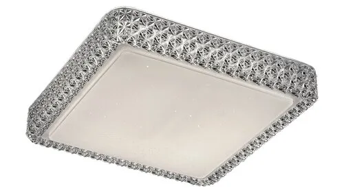 A csillogó effektes Lucilla mennyezeti lámpát azoknak ajánljuk, akik a modern LED lámpákat kedvelik, ám nem akarnak lemondani a klasszikus stílusjegyekről sem. A fémből és műanyagból készült lámpa karimáját akril kristályok díszítik. A fehér-átlátszó színű modell energiatakarékos, beépített LED fényforrással rendelkezik. A beépített LED fényforrás energiafogyasztása 24 W, fényereje 2200 lumen. A mennyzeti lámpa színhőmérséklete 4000 Kelvin, tehát természetes fehér fénnyel világít. Ez a nagyszerű mennyezeti lámpa remek társ lehet az étkezőben, a nappaliban, a konyhában vagy akár az előszobában is. A 400x400mm-es lámpa mennyezettől mért távolsága 90 mm. A Lucilla mennyezeti LED lámpára 5 év garanciát vállalunk.