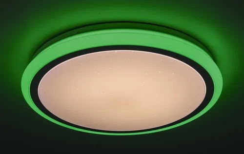 A csillogó effekttel ellátott Leonie mennyezeti lámpa fantasztikus kiegészítője lehet modern berendezésű nappalinknak, hálószobánknak vagy tágas előszobánknak. Ez a fehér színben készült okos lámpa funkcióit tekintve is sokkal többet nyújt egy szokványos modellnél: dimmelhető, azaz fényereje igény szerint változtatható, valamint beépített fényforrásának színhőmérséklete tetszés szerint állítható 3000-6500 K között. Ez azt jelenti, hogy képes meleg fehér, természetes fehér vagy éppen hideg fehér fénnyel megvilágítani az adott helyiséget. Ezenkívül váltogathatjuk a lámpa külső részének fényét RGB színeknek megfelelően. A fémből és műanyagból készült lámpa szabályozását távirányító teszi még kényelmesebbé. A beépített, energiatakarékos LED fényforrás teljesítménye 32 W, fényereje 2400 lumen, élettartama pedig mintegy 30 000 óra. A 400 mm átmérőjű, kerek lámpa mennyezettől való távolsága 75 mm. Erre a modellre 5 év garanciát vállalunk.