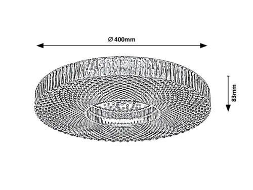A Ziva mennyezeti lámpa modern nappalink, hálószobánk vagy dolgozószobánk berendezésének feltűnő, egyszersmind sokoldalú darabja lehet. A krómszínű fémből és átlátszó műanyagból készült, kerek modell energiatakarékos, beépített LED fényforrással rendelkezik. A fényforrás teljesítménye 36 W, fényereje 2340 lumen, élettartama pedig 25 000 óra. A mennyezeti lámpa színhőmérséklete fali kapcsoló, illetve távirányító segítségével 3000-6000 K között állítható, azaz képes meleg, természetes vagy hideg fehér fénnyel világítani. A távirányítóval további funkciókat is működtethetünk: a Ziva dimmelhető, azaz fényereje változtatható, ezenkívül memória funkcióval is rendelkezik. További extrák az időzítő és az éjszakai funkció. A mennyezeti lámpa átmérője 400 mm, mennyezettől mért távolsága 83 mm.